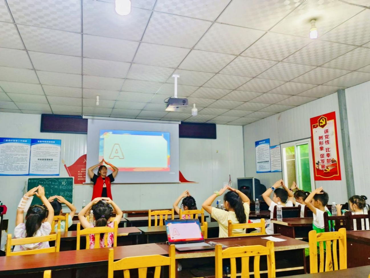 (图为“医”起旅行,织阳支教-乡村分队成员讲授夏令营课程:认识26个英文字母)