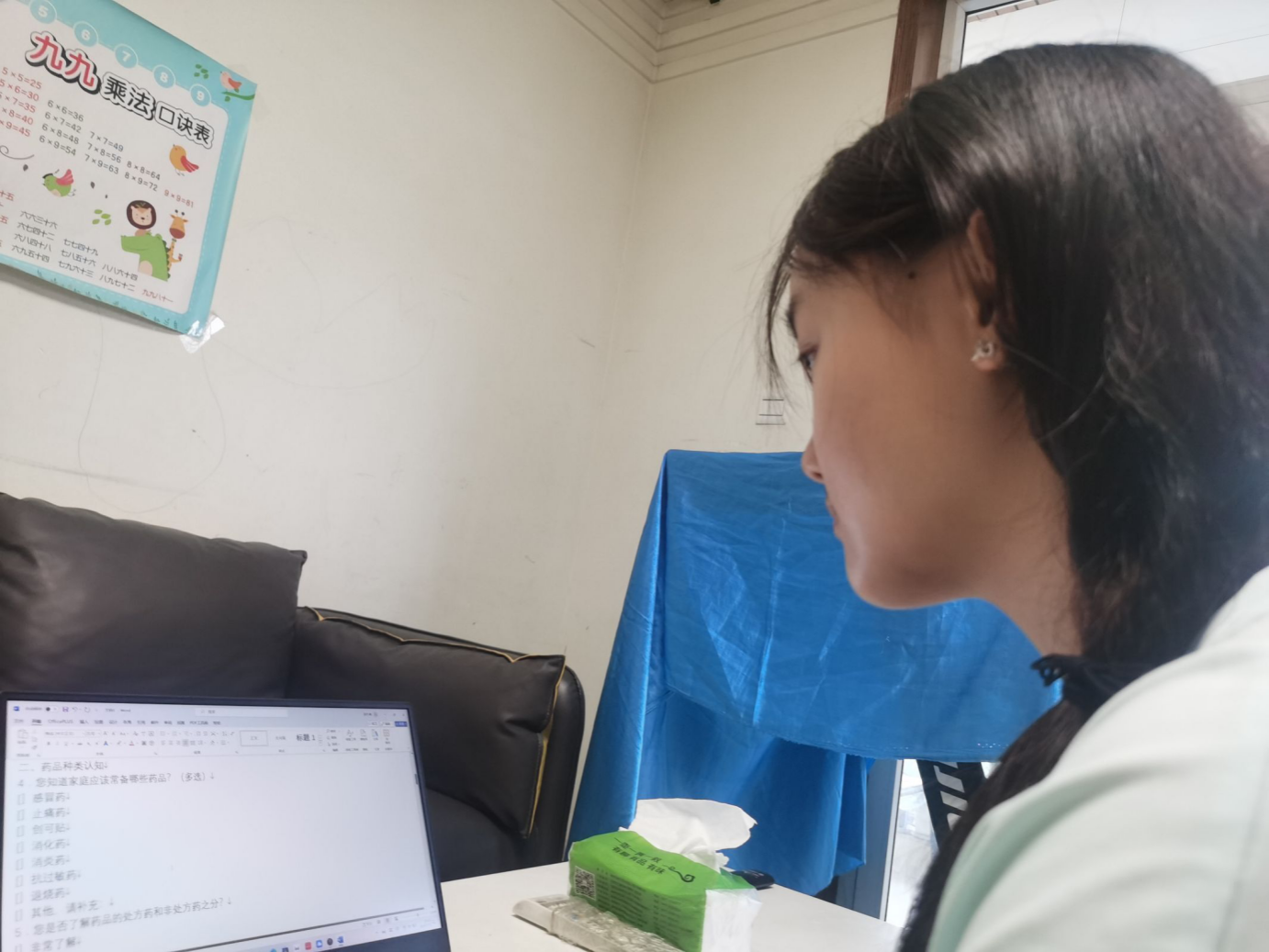 团队成员通过线下采访,询问家庭常备药物的相关内容,如药品管理、药品使用情况等,进一步了解了家庭用药存在的问题,为后期宣传奠定了一定的基础。队员陈鸿分享到:“受访者并不会按时检查药物的保质期、对药物的储存条件不了解且过期药物的处理方式不够完善,总之家中常备药的知识普及任重而道远。”