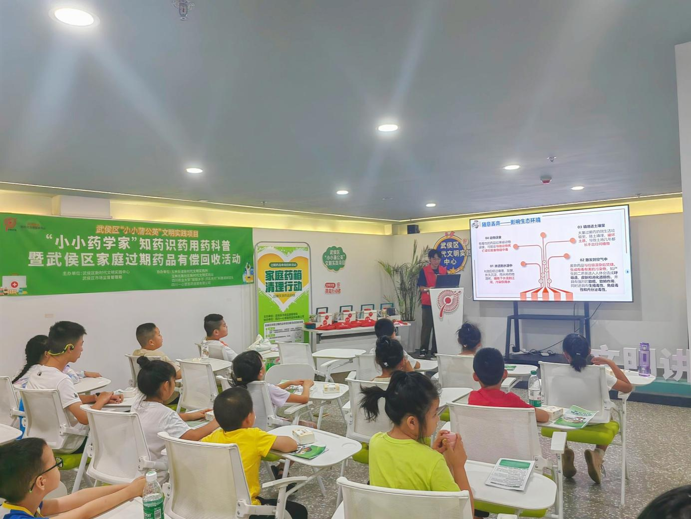 7月6日,社区调研分队和宣讲分队联合武侯区新时代文明中心共同举办了“小小蒲公英”文明实践项目——“小小药学家”知药识药用药科普暨武侯区家庭过期药品有偿回收活动。本次活动科普了常用药物的正确使用剂量、方法和合理储存方式,同时团队成员重点关注居民是否严格遵医嘱用药以及对“药食同源”相关知识的了解程度。调研期间,成员们发现许多居民对药物及“药食同源”认识不足;部分居民凭借自身经验增减或停用药物,存在药物滥用以及对过期药物危害认识不够,仍继续使用过期药物的现象;部分家庭存在屯药导致过期的情况。以上调研结果让团队成员深切意识到科普用药知识的重要性。