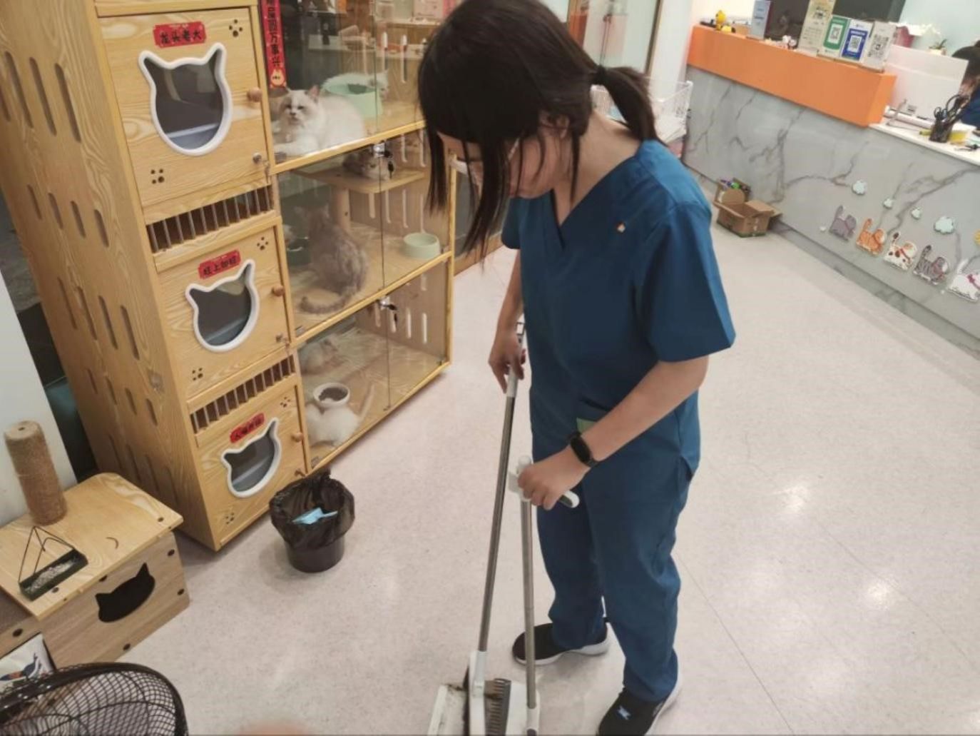 实践期间,团队成员需要完成宠物医院日常的基础工作,如保持住院区和寄样区卫生整洁,定时更换水粮。同时,还要协助医生接诊、保定动物以及接待客人。相比于学校平日所教授的理论课程,社会实践对动手能力有更高的要求。“在夯实课本基础的同时,也要学习课本之外的知识,如社会实践所需要的知识。”团队成员梁依然说到。