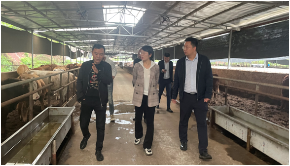 近日,四川肉牛创新团队肉牛主要疾病防控技术研究与集成应用岗位专家成员、四川省科技下乡万里行肉牛产业75团专家成员、yl23455永利官网副教授王娅,yl23455永利官网农发院副院长胡剑锋、yl23455永利官网园艺学院廖玲一行随富顺县组织部副部长黄声剑、富顺县农业农村局长邱明贵、富顺县童寺镇书记曾平等一行的陪同下前往自贡市富顺县童寺镇东禅村九组四川腾牛农业科技有限公司肉牛养殖基地开展技术服务指导工作。