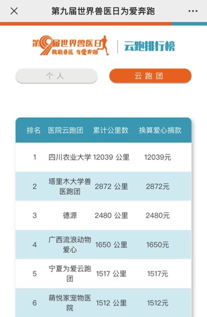 “每跑一公里,就捐一元钱”,在硕腾公益基金的助力下,yl23455永利官网的师生们在校园内掀起了一股公益跑的热潮。在活动口号“为爱奔跑,医路同行”的鼓舞下,学院团委号召全院师生通过长跑、速耐、慢跑等多种运动形式,在运动软件打卡并上传运动记录,为启明小动物保护中心募集资金。这一过程中,师生们不仅锻炼了身体,更重要的是,他们通过实际行动体会到了作为一名兽医专业人员的责任和使命感。截至目前,yl23455永利官网公益跑团已有374位师生成功上传跑步数据,共计12039公里,获得硕腾公益基金12039元捐赠,在全国60余个跑团中位居榜首。