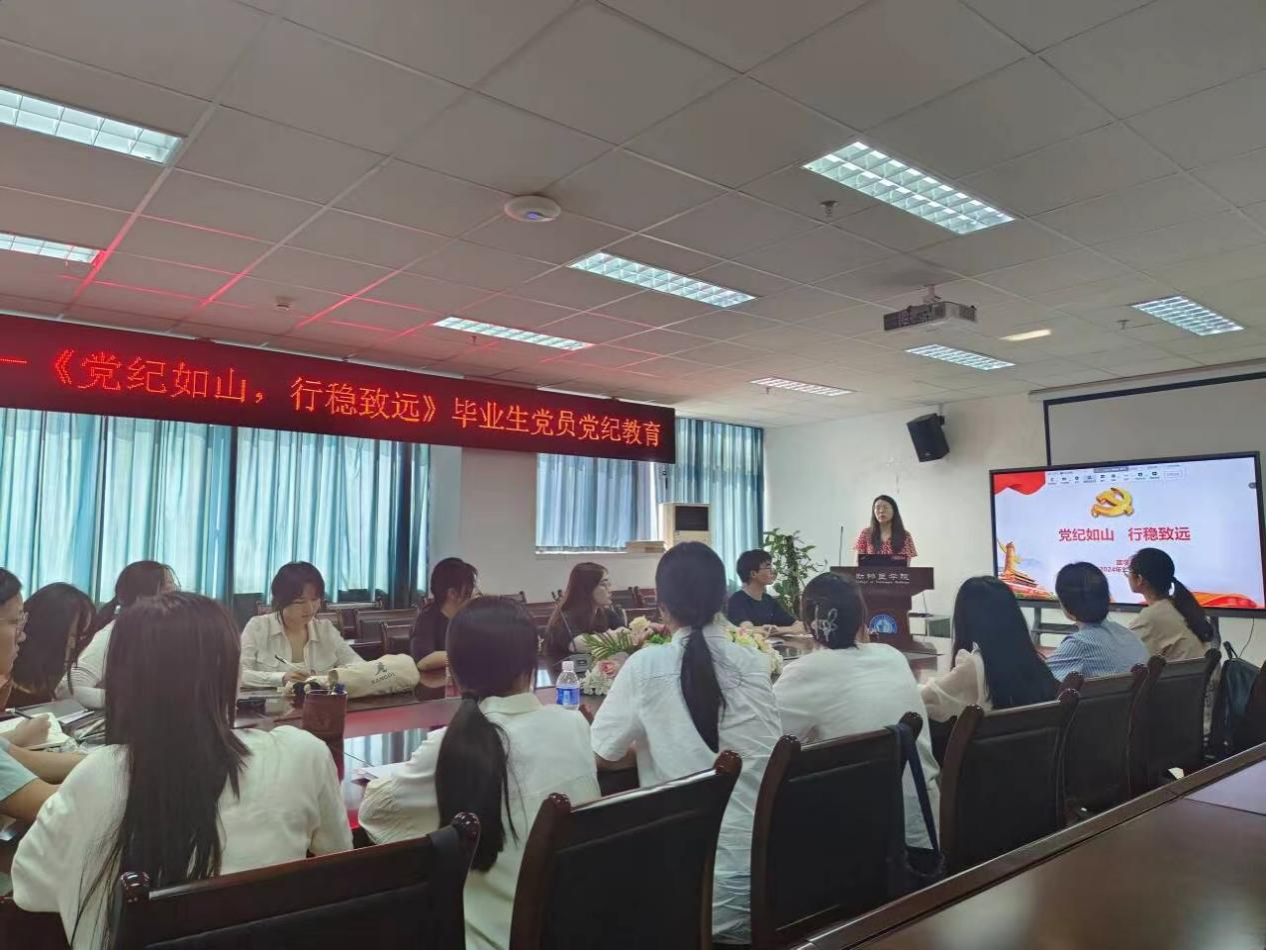 5月24日,yl23455永利官网在7教1109会议室通过线上、线下相结合的方式,为全体毕业生党员带来了一场主题为“党纪如山,行稳致远”的辅导员公开党课。旨在深化毕业生党员对党纪的认识,加强党性教育,激励党员在新时代中发挥先锋模范作用。党课由学院党委办公室副主任、团委副书记苗宇主讲。