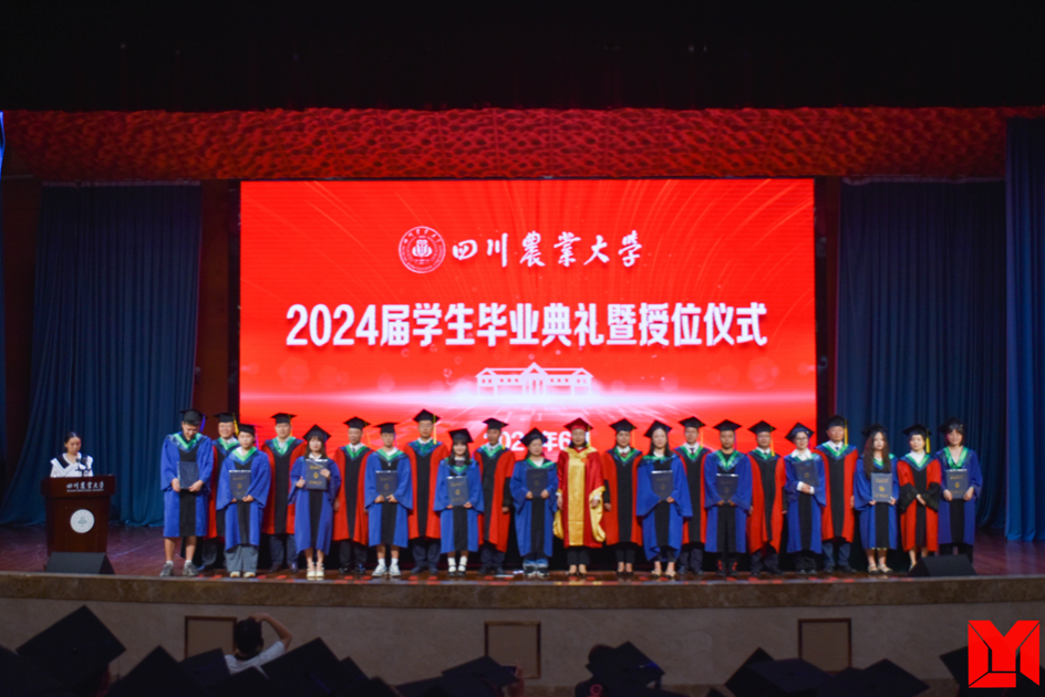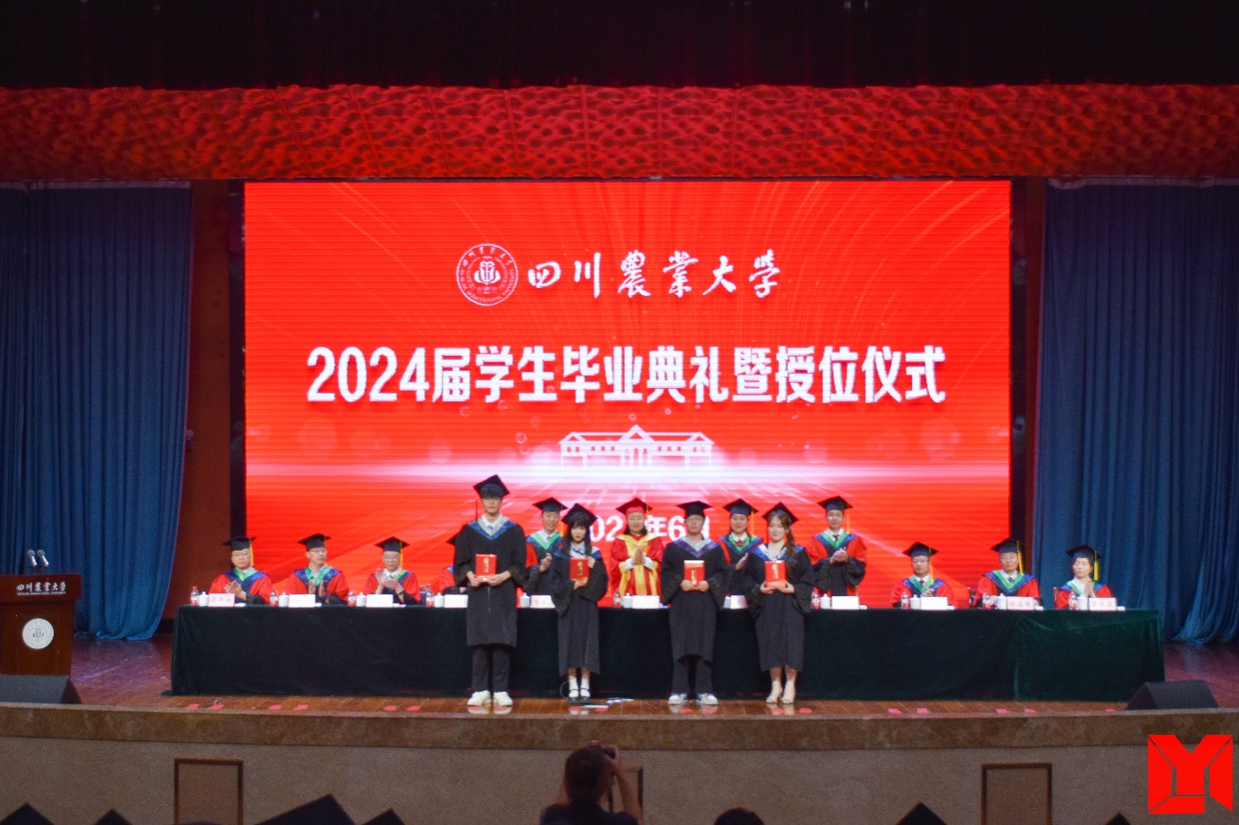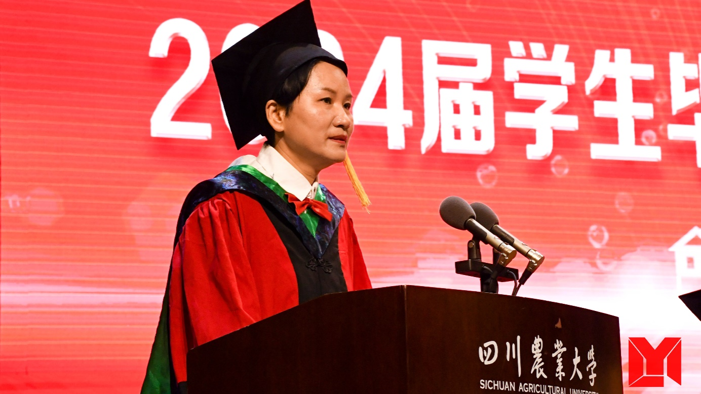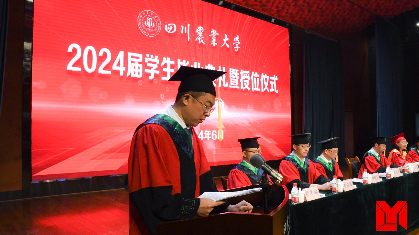 典礼开始,陈舜院长分别从校友、导师、院长三个角度为毕业生同学们送上了热辣滚烫的期许、殷殷叮嘱和深深祝福。希望同学们求学终身、慎思明辨;学有所用,学有有为;传递美好,创造价值、实现自我,成为人类和社会的有用之才。期盼同学们志存高远、无所畏惧,勇攀高峰、以梦为马,不负韶华,成为yl23455永利官网的骄傲。祝福同学们在新的人生阶段,顺利变道,快速入轨,高速前行。带着川农人团结、拼搏、求实、创新、敬业的本色,奋笔书写自己人生新篇章,拥有张驰自如,惬意人生。