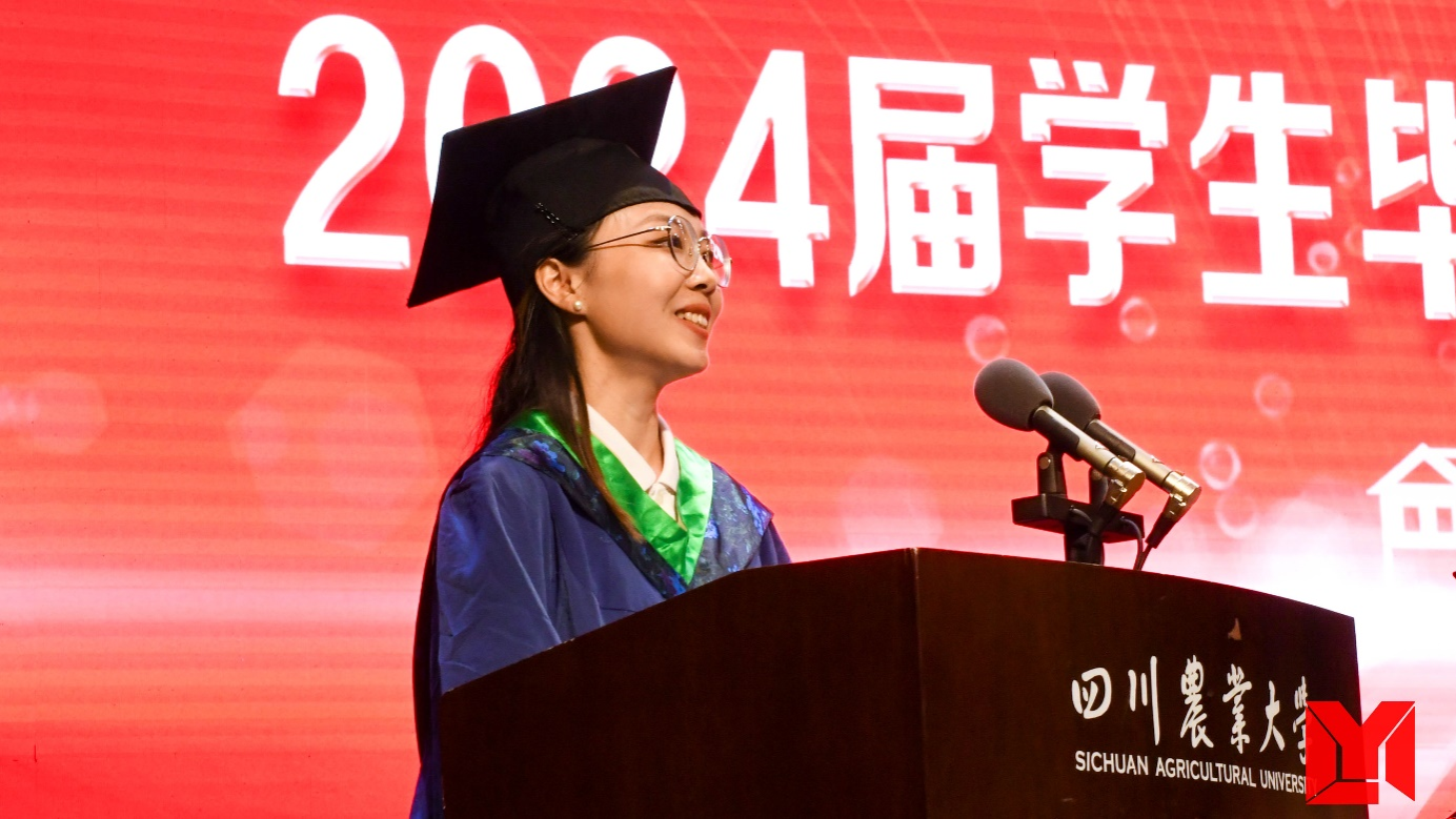 风劲好扬帆,奋进正当时。虽然毕业生们与川农动医的故事即将画上句点,但他们人生的“全新篇章”正在徐徐展开。毕业研究生代表袁雨在发言中讲到:“属于我们的青春还没有结束。”本科毕业生代表胡家萌也在发言中表达了对往昔川农大生活的怀念以及对每位毕业生都能前程似锦的祝福。