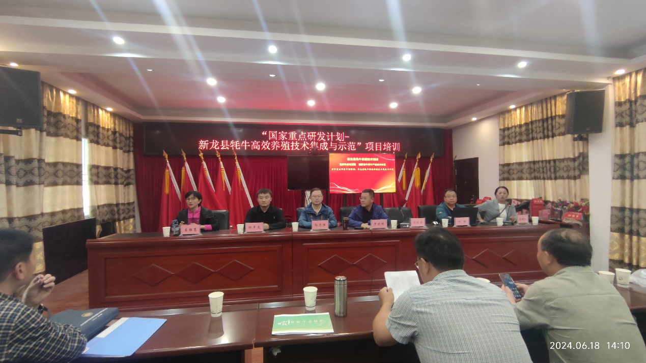 6月19日,专家团队在新龙县参加了2024年国家科技特派团科技帮扶座谈会,新龙县副县长熊永军、黄如一,新龙县委组织部部长王熠,新龙县政府办、新龙县委办、新龙县农牧局以及专家团队参加了会议。座谈会上,国家科技特派团新龙团团长罗晓林、各产业组负责人以及“国家重点研发计划—新龙县牦牛高效健康养殖技术集成与示范”项目课题负责人结合自身工作任务,就在新龙开展的工作作了详细汇报。新龙县农牧农村和科技局、康巴红公司就加快推进特色产业科技帮扶工作与各产业组专家开展交流讨论。