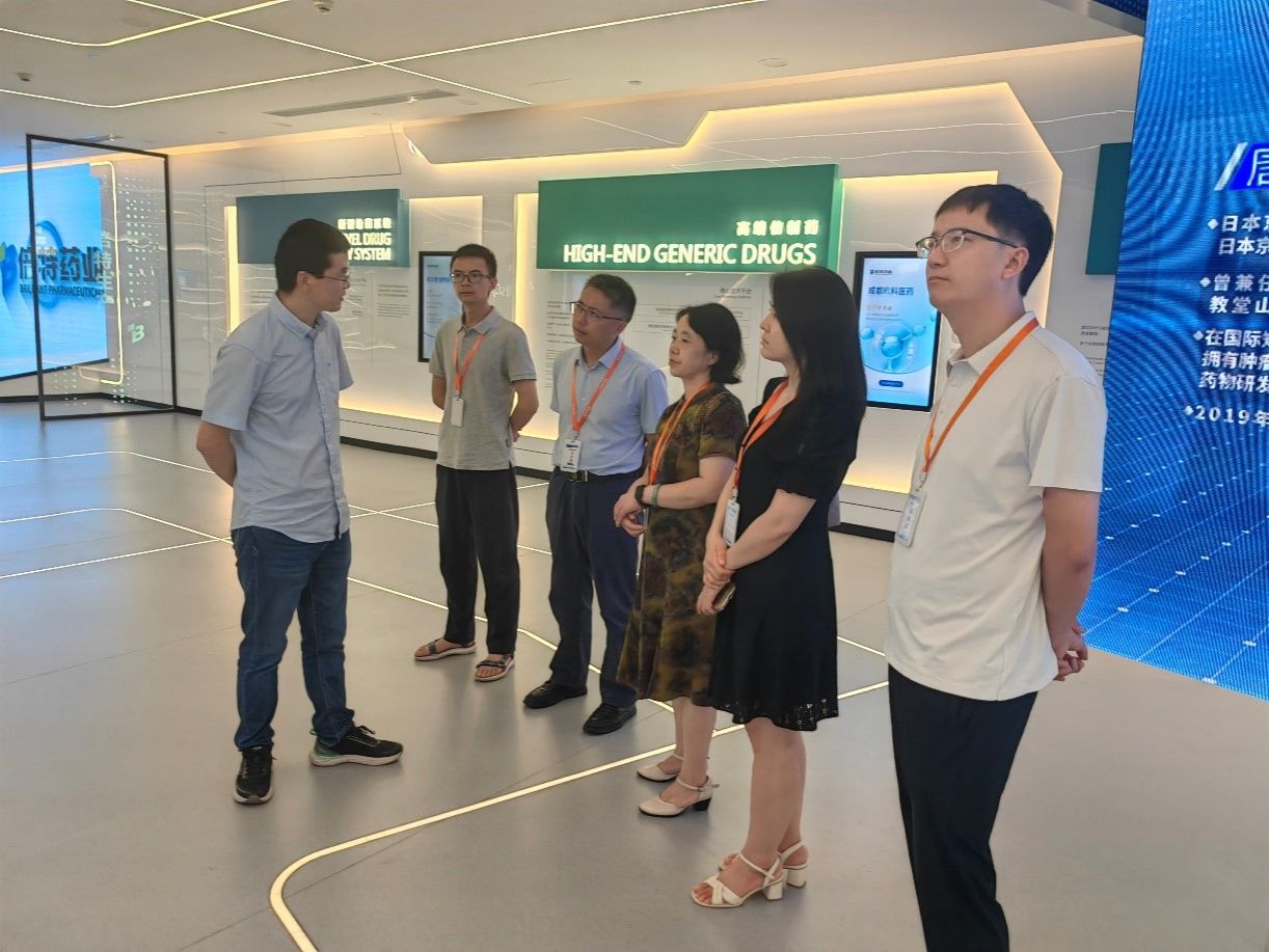 上午9点30分,殷中琼教授一行在倍特药业宠物药研究所研发总监杨成甫的引领下,参观了成都倍特药业药物研究院及总部,详细了解了倍特药业在宠物药物研发和生产方面的最新进展。
