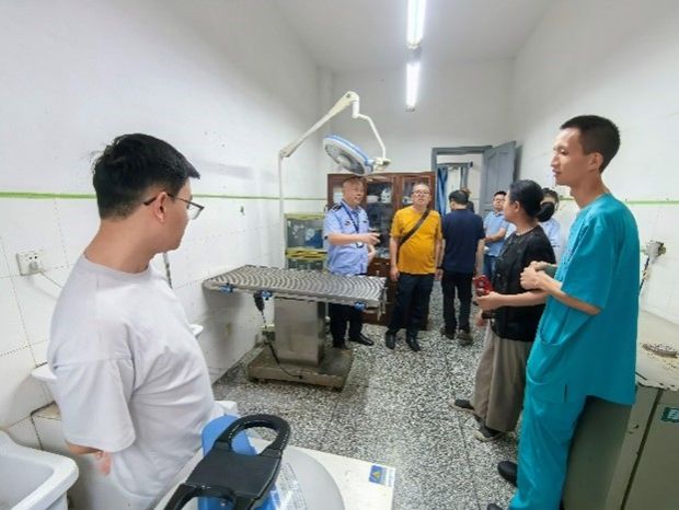 近日,四川省农业农村厅综合执法监督局何曾蓉一级调研员、喻赟四级调研员、魏永健一级主任科员、雅安市农业农村局执法监督科龙辉科长以及雨城区动物卫生监督所罗文彬所长、杜丽屏副队长、吴建华副队长等一行莅临我校教学动物医院,对我校教学动物医院门诊流程、药房药物分类管理、病历处方规范性、影像科辐射防护、医疗废弃物处理、动物病理组织等无害化处理暂存室等进行了详细的检查和指导。这一系列的检查与指导,充分体现了省、市、区各级领导对教学动物医院发展的高度重视。