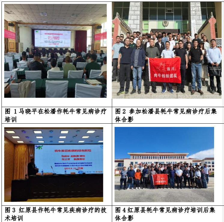 为持续推进国家乡村振兴战略,帮助肉牛产业提质增效,8月26-29日,四川肉牛创新团队岗位专家、国家体系肉牛牦牛常见病岗位专家左之才教授团队成员,yl23455永利官网临床兽医学系马晓平副教授和预防兽医学系猪病研究中心文翼平副教授应阿坝州农业农村局动物疫病预防控制中心和中国平安产险阿坝中心支公司邀请赴阿坝藏族自治州松潘、红原、汶川县动物疫控中心和养殖户开展动物养殖技术培训班和动物疫病技术指导服务,培训会取得圆满成功,技术指导得到参会基层兽医工作者和养殖场(户)的高度赞扬。