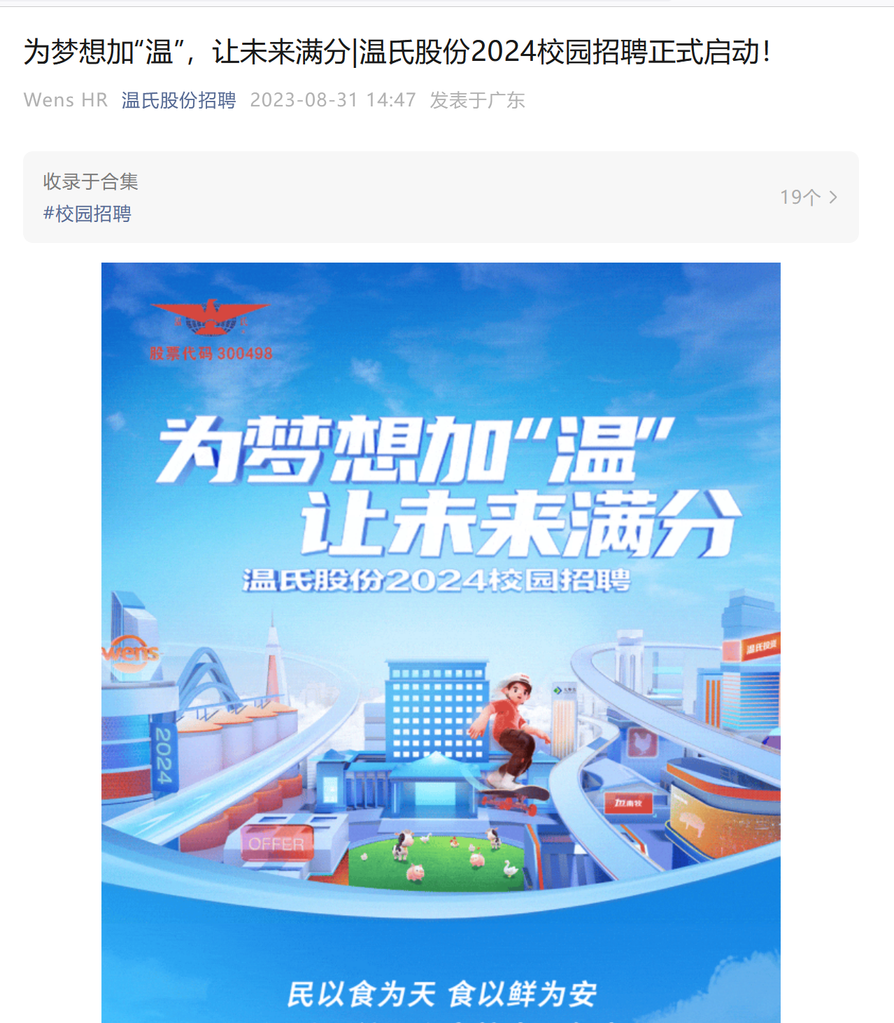 【上市公司】为梦想加“温”,让未来满分|温氏股份2024校园招聘正式启动!